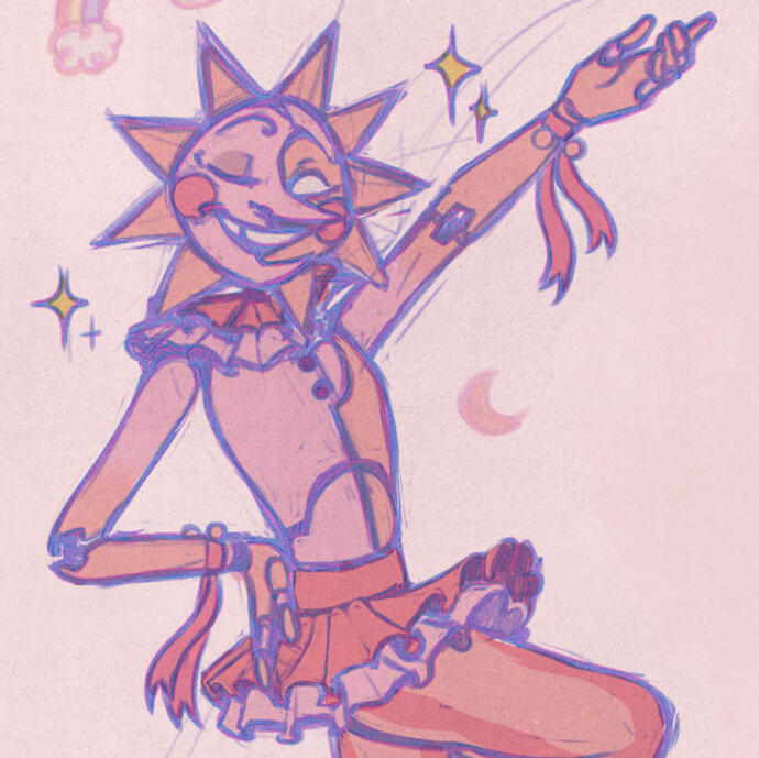 right now i'm super fixated on fnaf, especially the daycare attendant! don't be fooled by all the sun drawings, moon is actually my fave. something is wrong with him. <3